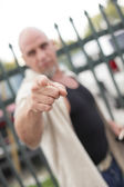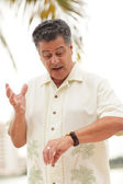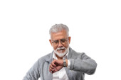 Dojrzałe stary biznesmen sprawdzanie czas na jego zegarek