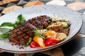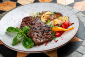 Sałatka Tagliata, z cielęciną, rukolą, pieczonymi ziemniakami.