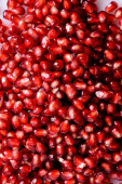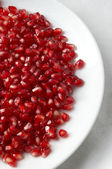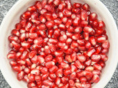 Czerwony granat Nasiona w misce, widok z góry. Leżał płasko, nad głową, z góry. Zbliżenie.