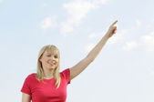 młoda kobieta rozprzestrzenia się w ramionach