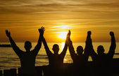 sylwetka szczęśliwy rodziny grający na plaży w słońca