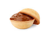 Połówki smacznego ciasteczka w kształcie orzecha włoskiego z gotowanym mlekiem skondensowanym na białym tle
