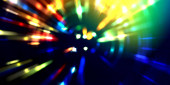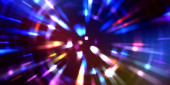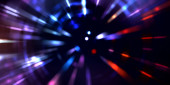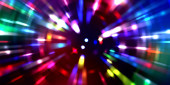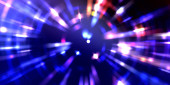 Fajne tło poruszających się świecących świateł. Żywy kolorowy szablon portalu dla Twojego projektu. Promienie świetlne i świecące cząstki w ruchu tworzące kształt tunelu czasoprzestrzennego.