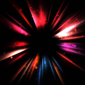 Ładne tło skrzyżowania promieni światła i świecących cząstek. Tapeta z żywymi kolorowymi światłami. Wyświetlacz światła Shinny.