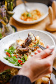 Zdjęcie "Focaccia z burrata przetargu i sosem Napoli z warzyw." może być wykorzystywane do celów osobistych i komercyjnych zgodnie z warunkami zakupionej licencji Royalty-free. Obraz jest dostępny do pobrania w jakości wysokiej rozdzielczości do 5760x3840.