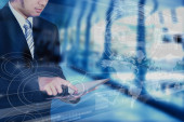 działalności człowieka w niebiesko-szary garnitur za pomocą pióra cyfrowego pracy z di