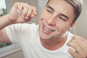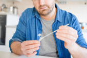 Jeden człowiek robi test przy użyciu szybkiego urządzenia testowego dla COVID-19