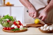 Zdjęcie "częściowy widok człowieka cięcia bakłażana w pobliżu pomidorów, cebuli, jaj kurzych i butelki z olejem" może być wykorzystywane do celów osobistych i komercyjnych zgodnie z warunkami zakupionej licencji Royalty-free. Obraz jest dostępny do pobrania w jakości wysokiej rozdzielczości do 5760x3840.