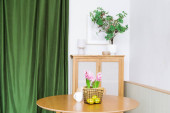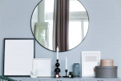 Zdjęcie "Drewniany stojak z elementami dekoracyjnymi stoi na tle betonowej ściany. Garnek z zieloną rośliną jest na pierwszym planie. Minimalizm we wnętrzu" może być wykorzystywane do celów osobistych i komercyjnych zgodnie z warunkami zakupionej licencji Royalty-free. Obraz jest dostępny do pobrania w jakości wysokiej rozdzielczości do 5760x3840.