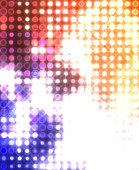 Świecący wzór tapety. Wspaniałe tło kolorowych świateł z reflektorami. Świecące lampki na czarnym tle. Cyfrowa ilustracja reflektorów sceny lub stadionu.