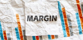 Koncepcja MARGIN, drewniany blok słów na szarym tle