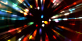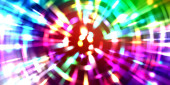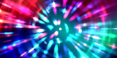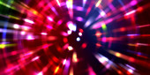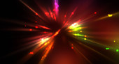 Fajne tło poruszających się świecących świateł. Żywy kolorowy szablon portalu dla Twojego projektu. Promienie świetlne i świecące cząstki w ruchu tworzące kształt tunelu czasoprzestrzennego.