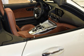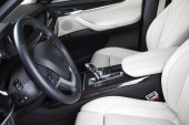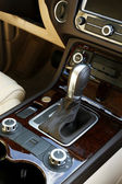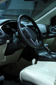 Widok wnętrza samochodu z salonu beżowy i czarny deska rozdzielcza