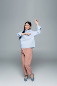 Zdjęcie "Pozytywny azjatycki model trzymający torby na zakupy i wskazujący palcem na szarym tle " może być wykorzystywane do celów osobistych i komercyjnych zgodnie z warunkami zakupionej licencji Royalty-free. Obraz jest dostępny do pobrania w jakości wysokiej rozdzielczości do 5760x3840.