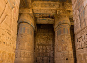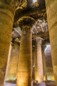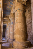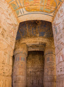 Zdjęcie "Ozdobione kolumny Medinet Habu (świątyni grobowej Ramzesa III) w nekropolii tebańskiej, Egipt" może być wykorzystywane do celów osobistych i komercyjnych zgodnie z warunkami zakupionej licencji Royalty-free. Obraz jest dostępny do pobrania w jakości wysokiej rozdzielczości do 5760x3840.