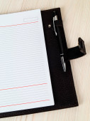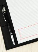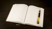 Otwarta strona pamiętnika do zapisywania informacji. Obraz z bliska
