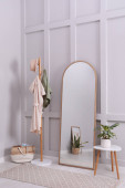 Zdjęcie "Nowoczesne wnętrze garderoby ze stylowymi ubraniami, butami i dużym lustrem" może być wykorzystywane do celów osobistych i komercyjnych zgodnie z warunkami zakupionej licencji Royalty-free. Obraz jest dostępny do pobrania w jakości wysokiej rozdzielczości do 5760x3840.
