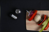 zdrowego odżywiania - sałatka wlać do czarnej miski porcelany na jasnym tle. Obraz zawiera przestrzeń do kopiowania
