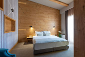 Wnętrze luksusowego hotelu pokój dwuosobowy rano