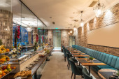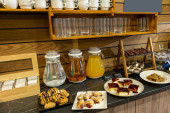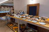 Przekąski i sałatka serwowane na stole w formie bufetu w restauracji