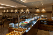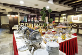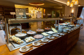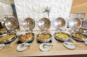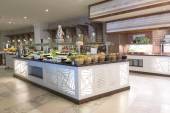 Przekąski i sałatka serwowane na stole w formie bufetu w restauracji