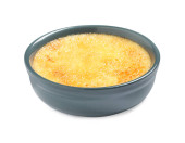 Pyszne creme brulee w ceramicznych ramekins na białym tle