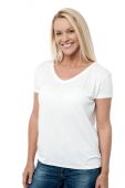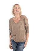 na białym tle atrakcyjna kobieta w latach czterdziestych noszenia jeansów i