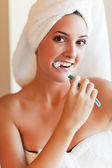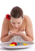 piękna dziewczyna Azji mycia twarzy