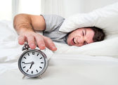 spokojny człowiek, leżąc na łóżku przed są budzeni