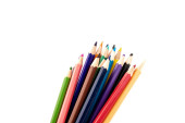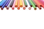 kolorowe kredki na białym tle na białym tle. Płytkiej głębi
