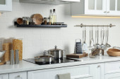 Zdjęcie "Blat z różnymi naczyniami do gotowania w kuchni" może być wykorzystywane do celów osobistych i komercyjnych zgodnie z warunkami zakupionej licencji Royalty-free. Obraz jest dostępny do pobrania w jakości wysokiej rozdzielczości do 5760x3840.