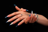 ludzkie palce z długim paznokciem i piękny manicure na czarnym tle