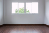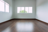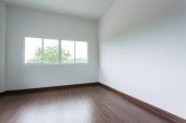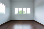 moździerz biały ściany i drewniane podłogi w pokoju