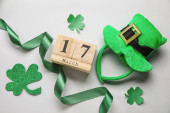 Różne akcesoria na Dzień św. Patryka, widok z góry