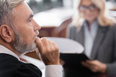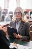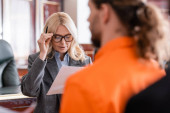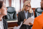 portret blond w średnim wieku adwokat noszenie okularów w sądzie