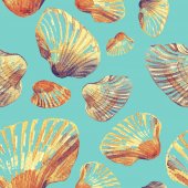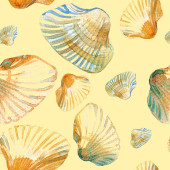 Ilustracja akwarela z muszlami i piaskiem na beżowym tle. Dla twojego projektu. Idealny do projektowania pocztówek, notebooków i innych.