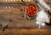 Zdjęcie "pomidory wiśniowe, oliwa z oliwek, cebula i czosnek na drewnie wiejskim z przestrzenią tekstową, przestrzeń do kopiowania, widok z góry" może być wykorzystywane do celów osobistych i komercyjnych zgodnie z warunkami zakupionej licencji Royalty-free. Obraz jest dostępny do pobrania w jakości wysokiej rozdzielczości do 5760x3840.