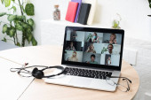 Zdjęcie "Webinarne wideokonferencje na laptopie. Konferencja internetowa" może być wykorzystywane do celów osobistych i komercyjnych zgodnie z warunkami zakupionej licencji Royalty-free. Obraz jest dostępny do pobrania w jakości wysokiej rozdzielczości do 5760x3840.