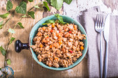 Zielona soczewica gulasz z białym winem, szynka Serrano i wędzona papryka