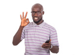 młody pewny siebie biznesmen trzymający palec na ramie okularów optycznych.