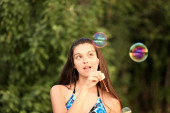 młoda dziewczyna dmuchanie baniek mydlanych