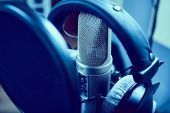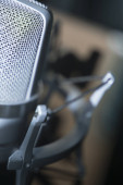 Profesjonalny mikrofon zawieszony w powietrzu profesjonalnego studia