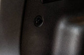 Makro widok śruby ze stali nierdzewnej lub głowicy gwiazdy. Sprzęg panelu drzwiowego we wnętrzu samochodu.