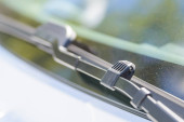 Zamknąć spryskiwacze szyby przedniej na wycieraczce. Nowoczesna technologia samochodów.