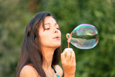 młoda dziewczyna dmuchanie baniek mydlanych