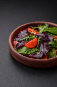 Zdjęcie "Świeże pyszne sałatki z rękawami, szpinakiem i liści buraka z oliwą z oliwek na czarnym talerzu. Smaczna zdrowa żywność" może być wykorzystywane do celów osobistych i komercyjnych zgodnie z warunkami zakupionej licencji Royalty-free. Obraz jest dostępny do pobrania w jakości wysokiej rozdzielczości do 5760x3840.