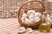 czosnek, sól, pieprz, olej słonecznikowy, liść laurowy, cebula i tom