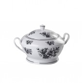 antyczne naczynia do nakrycia stołu. vintage chinaware z kwiatowym wzorem na czarnym odizolowanym tle
