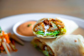 Miska z dwoma kawałkami tortilli wegetariańskiej
