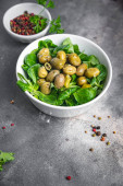 oliwki zielona sałatka świeża porcja dieta zdrowy posiłek jedzenie dieta martwa natura przekąska na stole kopia przestrzeń jedzenie tło rustykalny górny widok keto lub paleo dieta wegetariańskie wegańskie lub wegetariańskie